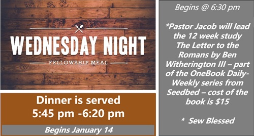Join us for our 2026 Spring semester Wednesday evening study, starting January 14. We will gather each Wednesday for a meal at, then jump into our study after. This semester we will be digging into a 12-week study […]