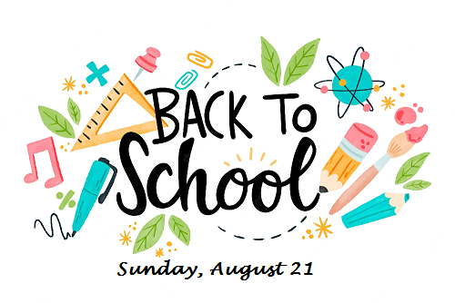 Join us on Sunday, August 21 @ 12 pm for our Back to School Sunday. We will have “blessings the backpacks” during our 10:30 am Worship Service, followed by a cookout, ice cream social & fellowship. Save the date and we hope to see you there!