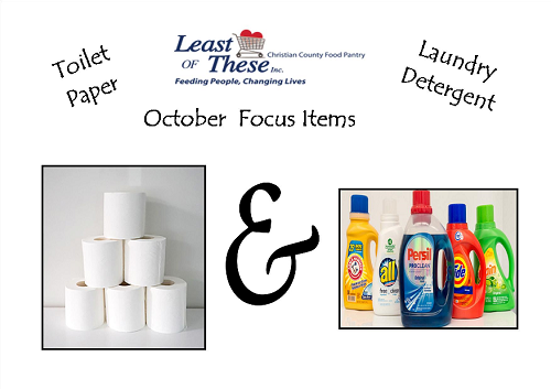 Next time you are out shopping, pick up these items for our partner in ministry The Least of These food pantry. Drop them by the church or bring them with you on Sunday morning and place in the trunk just outside the Worship Center doors.